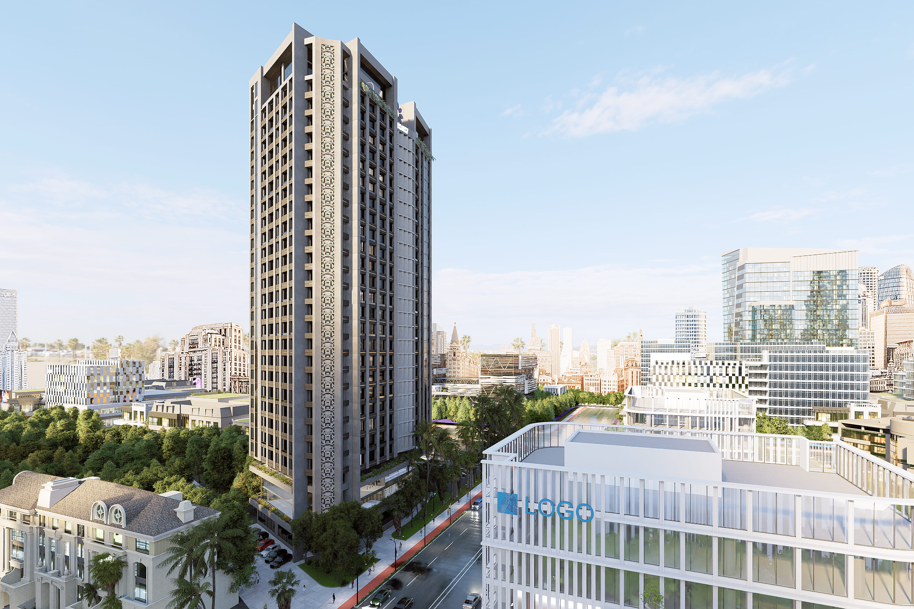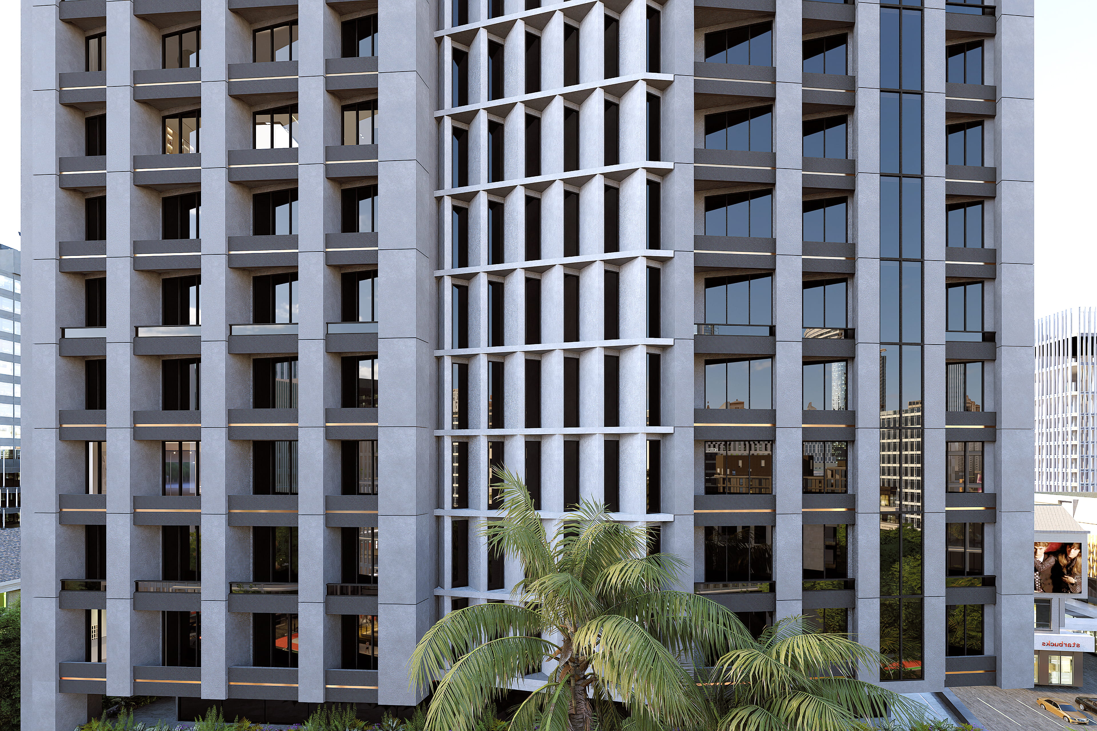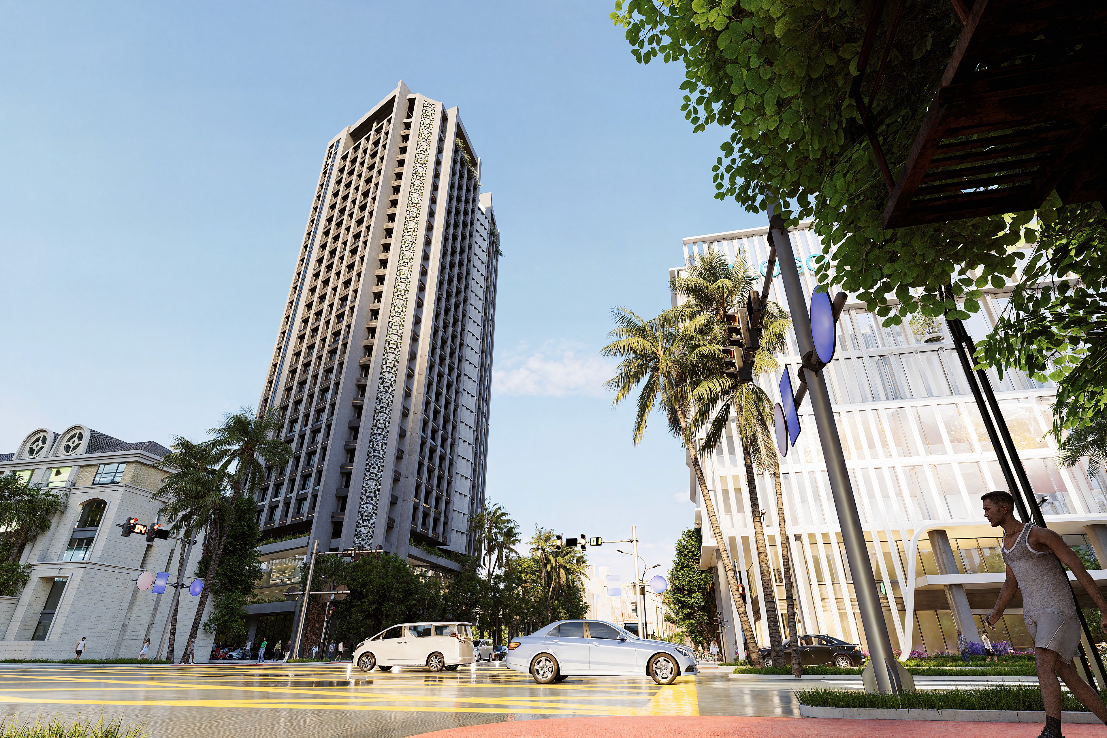 The Living Facade: Integrated rhythmic, generous balconies with built-in greenery, creating a "breathable" building skin that softens the urban silhouette.